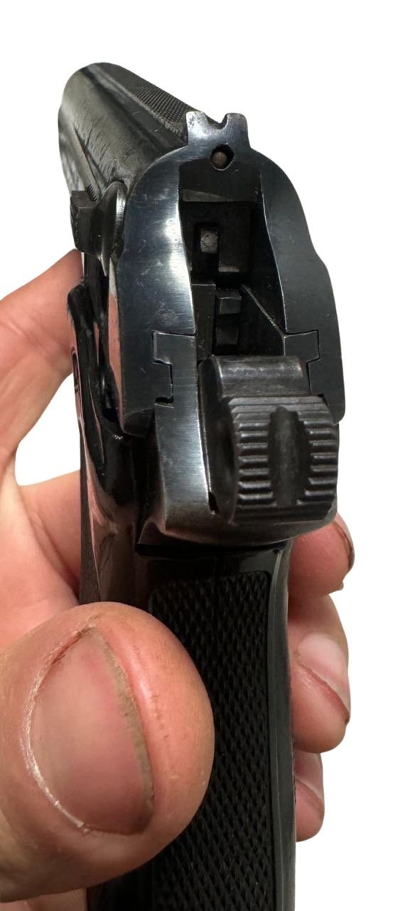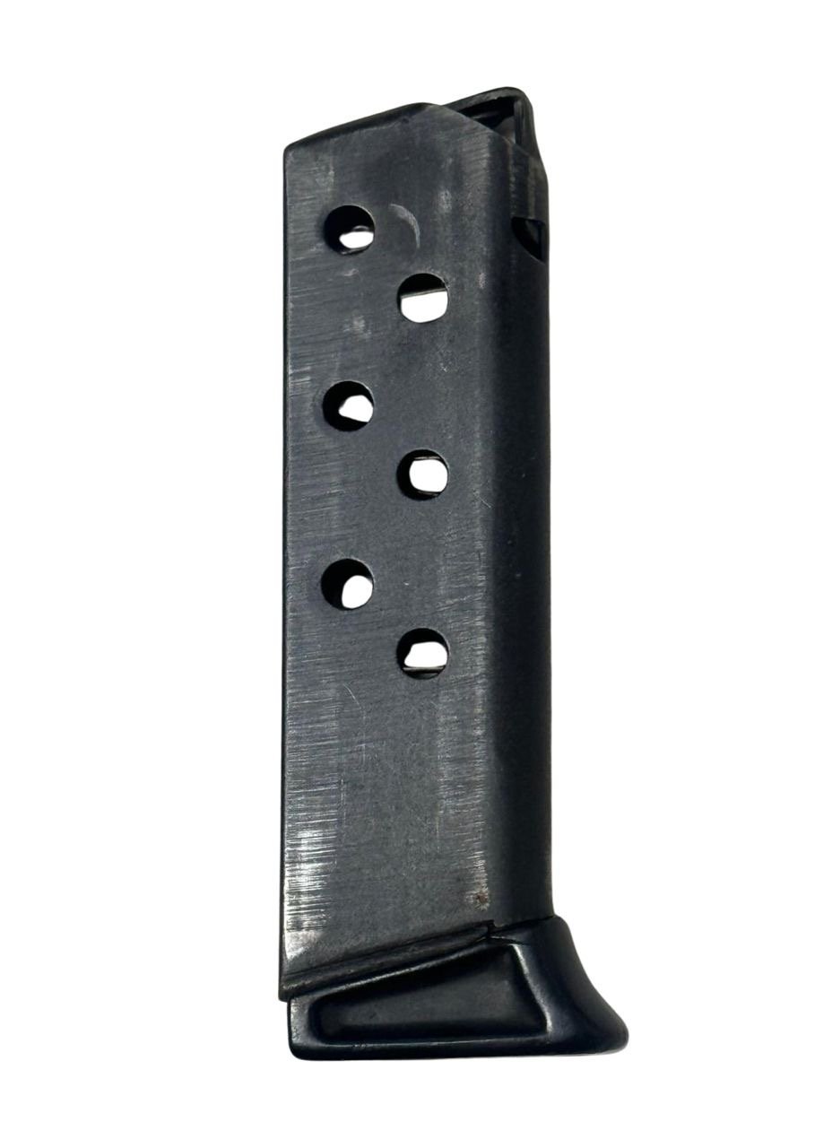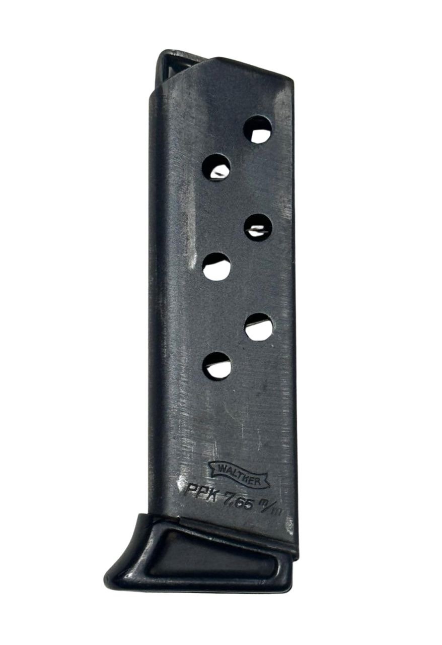 The action cycles properly, safety/decocker functions as designed, and the pistol includes one magazine with pinky extension. This is the original Walther Polizeipistole Kriminalmodell (PPK)-renowned for its compact size, double-action trigger, and decocker system.