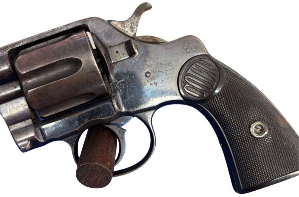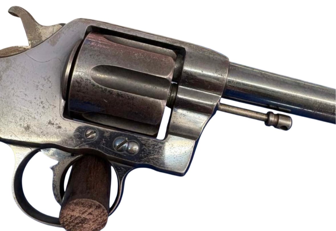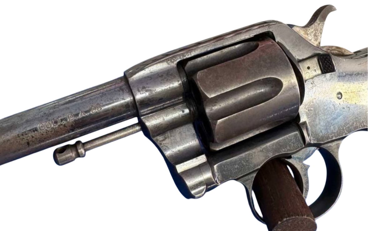 Navy Commercial double-action revolver, chambered in .38 Long Colt and manufactured in 1895. This model is historically significant as Colt’s first production double-action revolver.