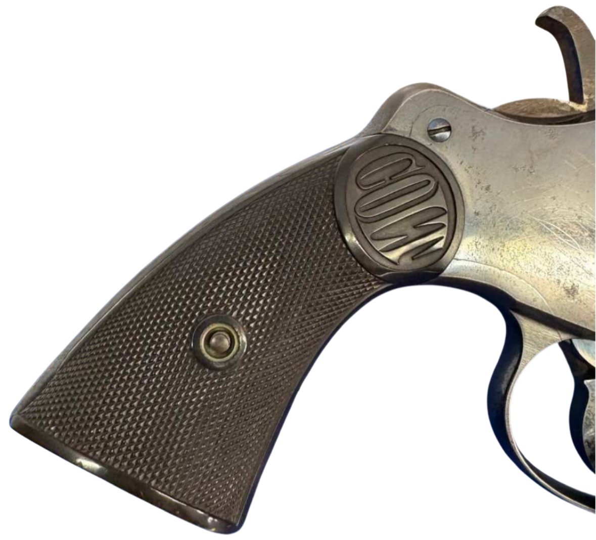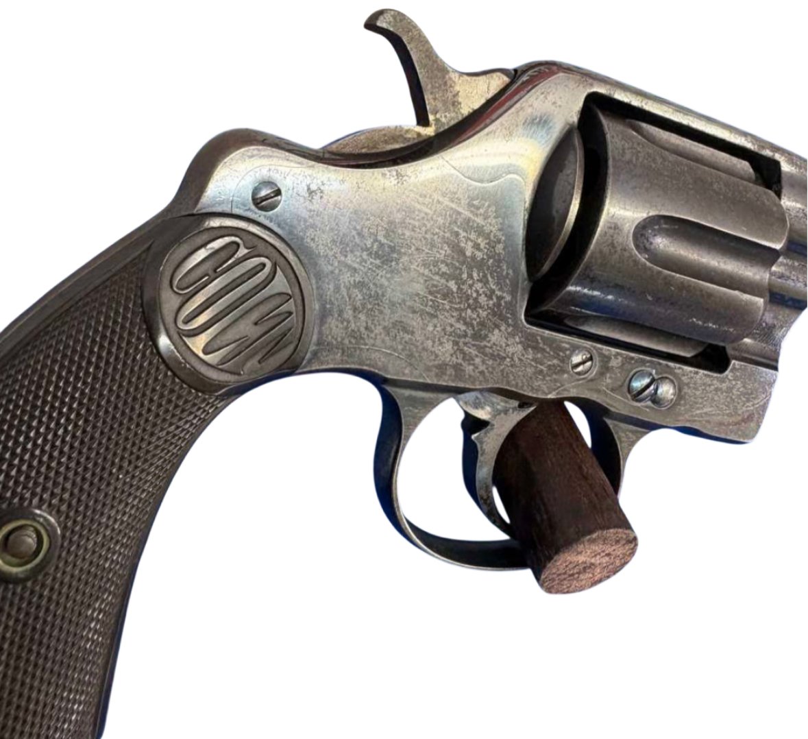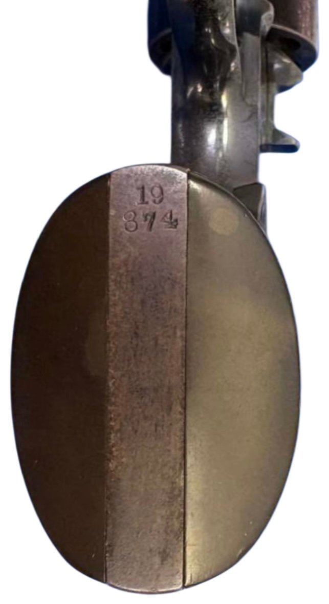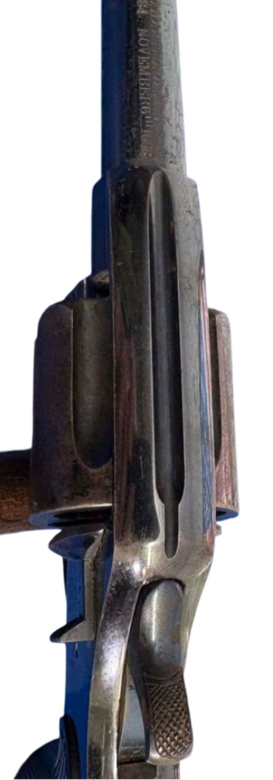 This revolver is a commercial example in its original configuration, including the free-rotating cylinder, which is correct for early 1889 models. Most Navy-issued examples were later modified with locking cylinders, making untouched originals like this increasingly scarce. Fewer than ~5,000 were produced in this contiguration.