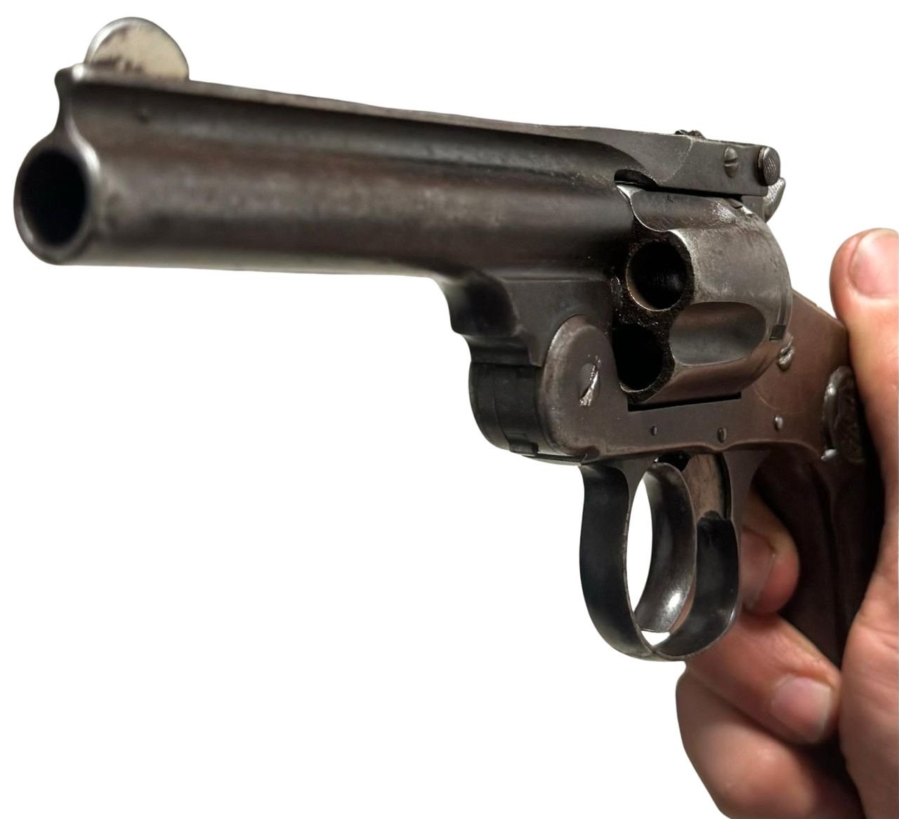 Smith & Wesson top break revolver chambered in .38 S&W with a 4-inch barrel, believed to be a 4th Model based on configuration and serial number (S/N